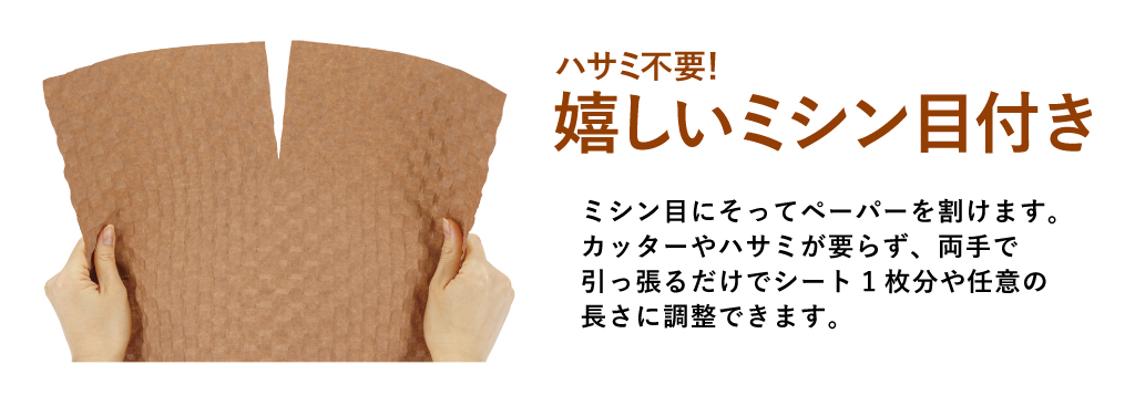 通常、ハサミなどでペーパーを裁断する必要がありますが、専用紙にはすでにミシン目が付いているので、軽く手で引っ張ると裂けます。